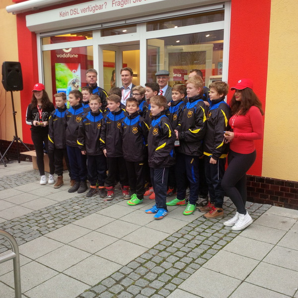 Im Rahmen der Wiedereröffnung vom Vodafone Shop am 13.12.2014 in Falkensee, Bahnhofstraße 67, erhielten unsere D Junioren neue Jacken. Überreicht wurden diese von Marcus