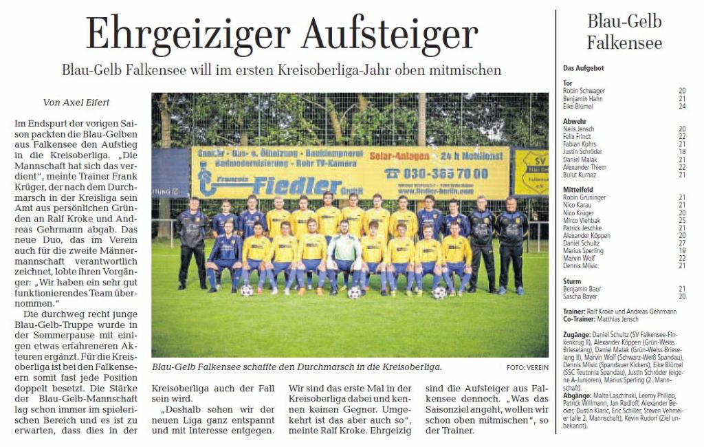 "Blau-Gelb Falkensee macht Aufstieg perfekt