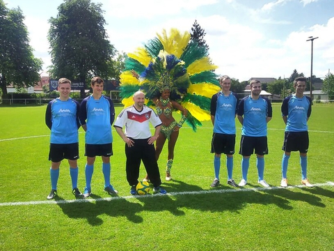 Unterstützt wurden der Sänger und die Sambatänzerin durch einige Fußballspieler vom Verein. Hier geht es zur Sat.1 Website mit dem "Ola Brasil!" - Clip.