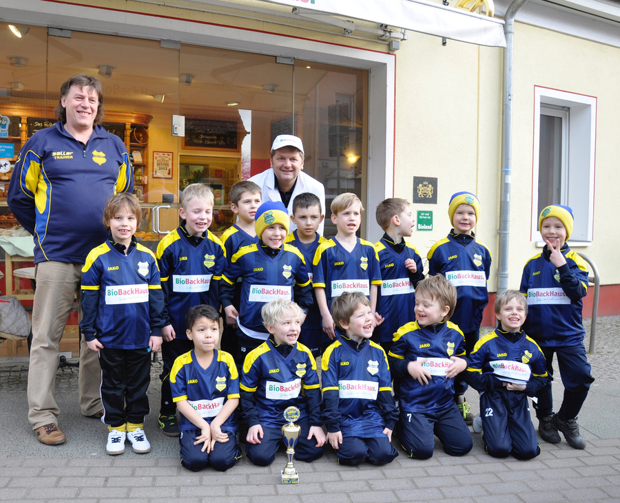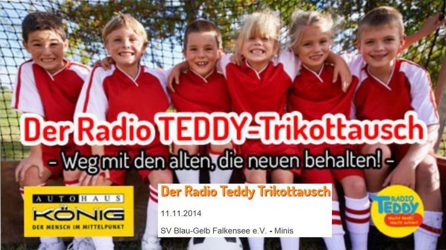 Am Samstag, 13.12., war die Übergabe der Trikots im Autohaus Renault König in Teltow. Gysi, Trainer der Minis, und Jörg, 1. Vorsitzender, nahmen die Trikots von Radio Teddy entgegen. Bereits am Sonntag haben die Minis in diesen Trikots ihr erstes Turnier gespielt.