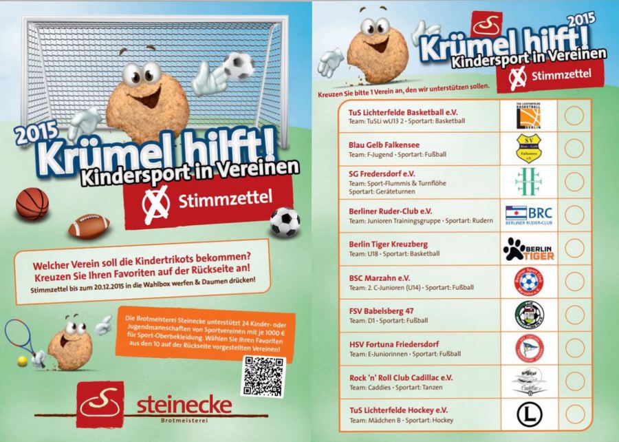 Aktion: "Krümel hilft 2015! Kindersport in Vereinen" -> die blau-gelben F Junioren sind dabei!